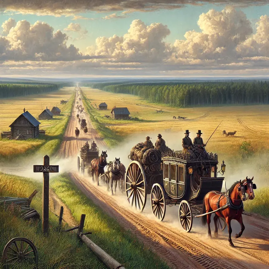 До середины XIX века основными видами транспорта были конные экипажи и дилижансы. Средняя скорость передвижения на таких повозках составляла 10-15 километров в час. Однако путешествие не могло быть непрерывным: требовалось время на отдых, смену лошадей, ночлег, еду и непредвиденные задержки.